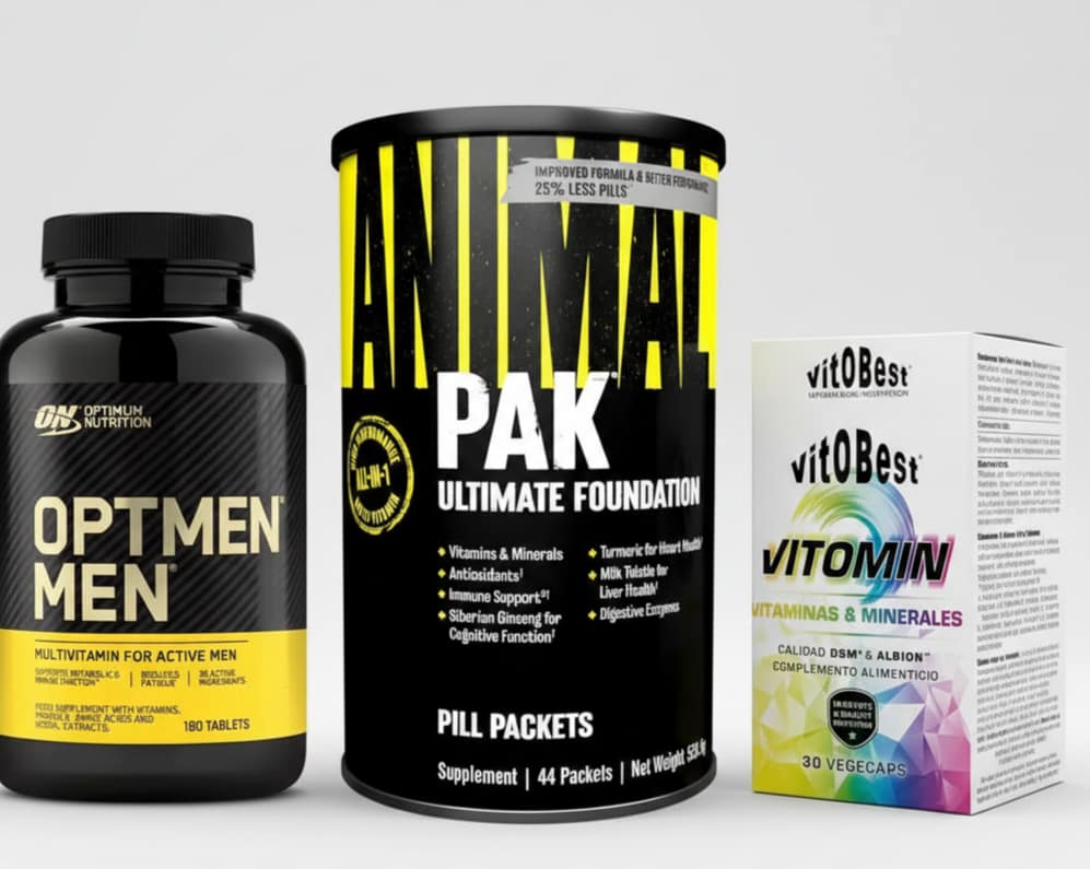 Un multivitamínico de calidad + vitamina D es más que suficiente para cubrir lo básico. - Si entrenas 3–5 días por semana: